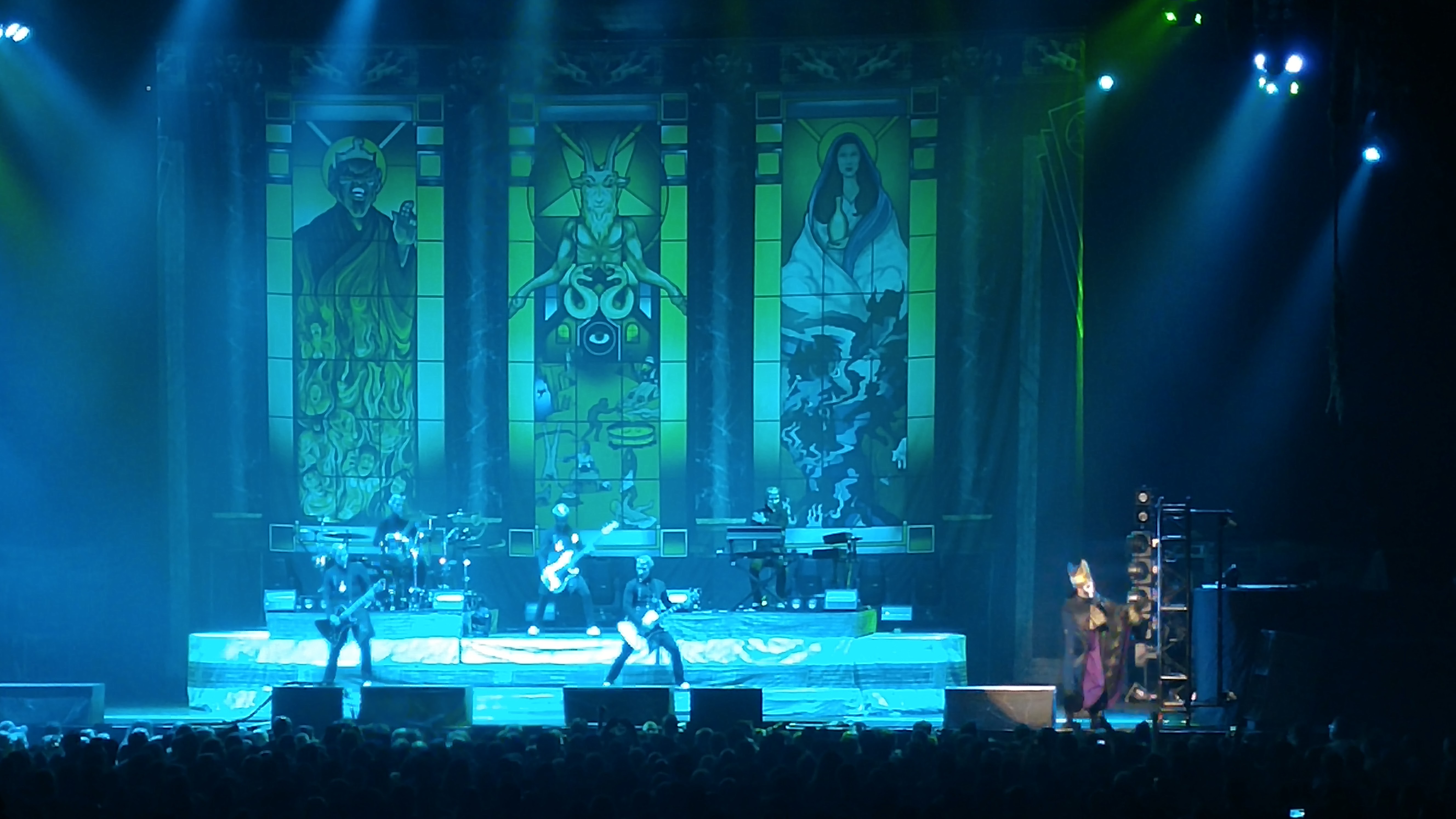 So Ghost started playing their stuff with the "Papa Emeritus III" talking mostly about sex. Having sex, the pleasure of sex, how he wanted everyone to go home that night and have sex. It was clear this guy has some strange obsession not being "Satanic" but "Sexual".